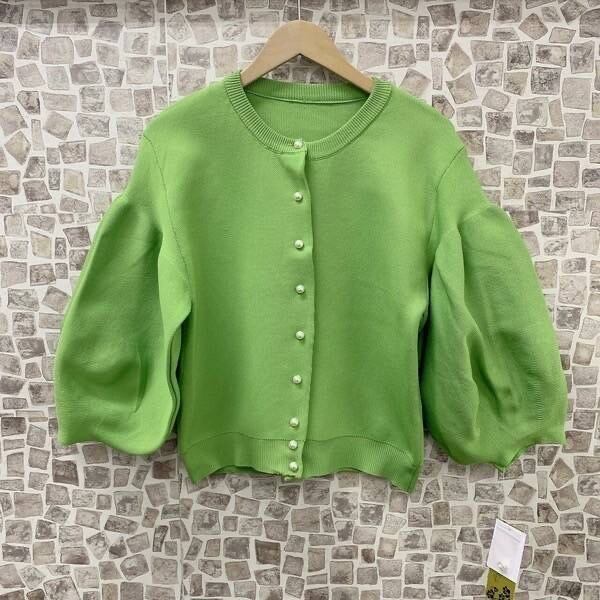 袖ボリュームニットカーディガンは、今年のトレンドを押さえた一枚です。袖がたっぷりとしたデザインが特徴で、着るだけでコーディネートがおしゃれに決まります。シンプルなトップスと合わせるだけで、こなれ感のあるスタイリングが完成します。