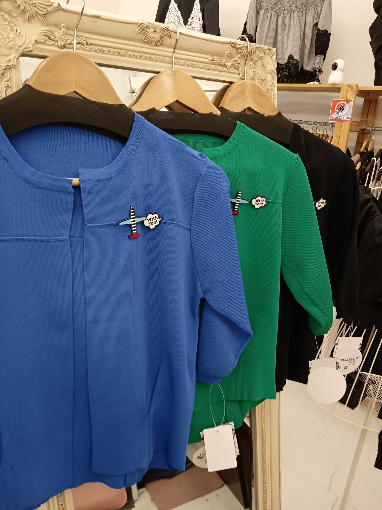 飛行機ブローチ付ショートカーディガン