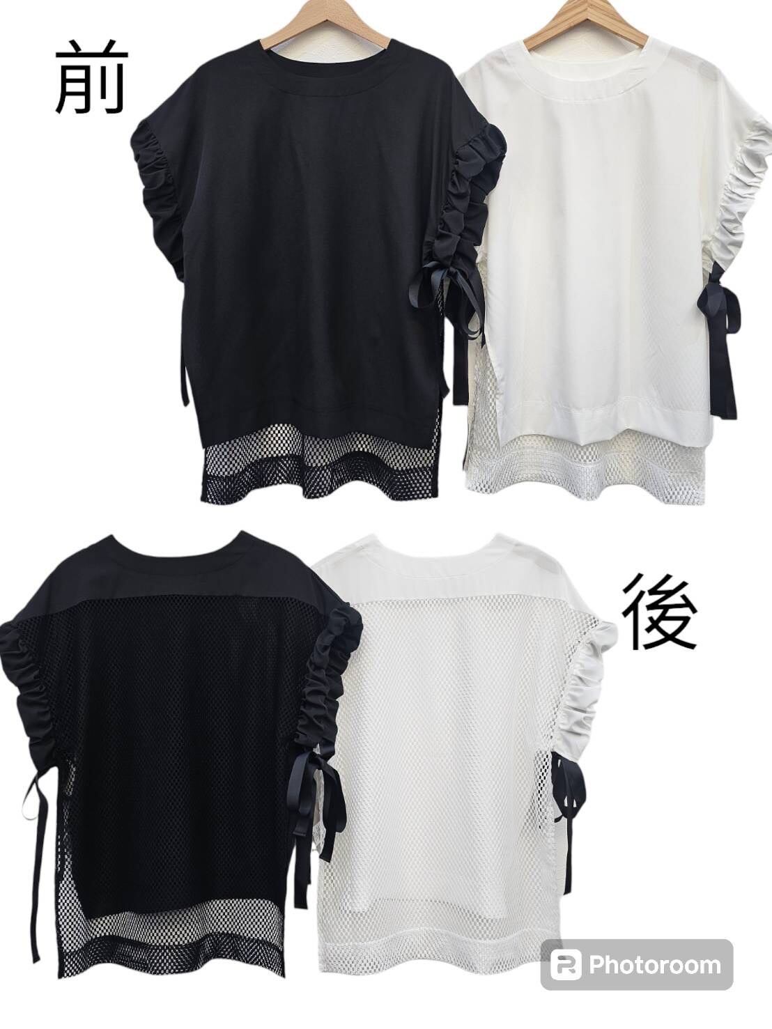 背中のメッシュ素材が涼しい着心地を提供し、後ろリボンが女性らしいアクセントになっています。